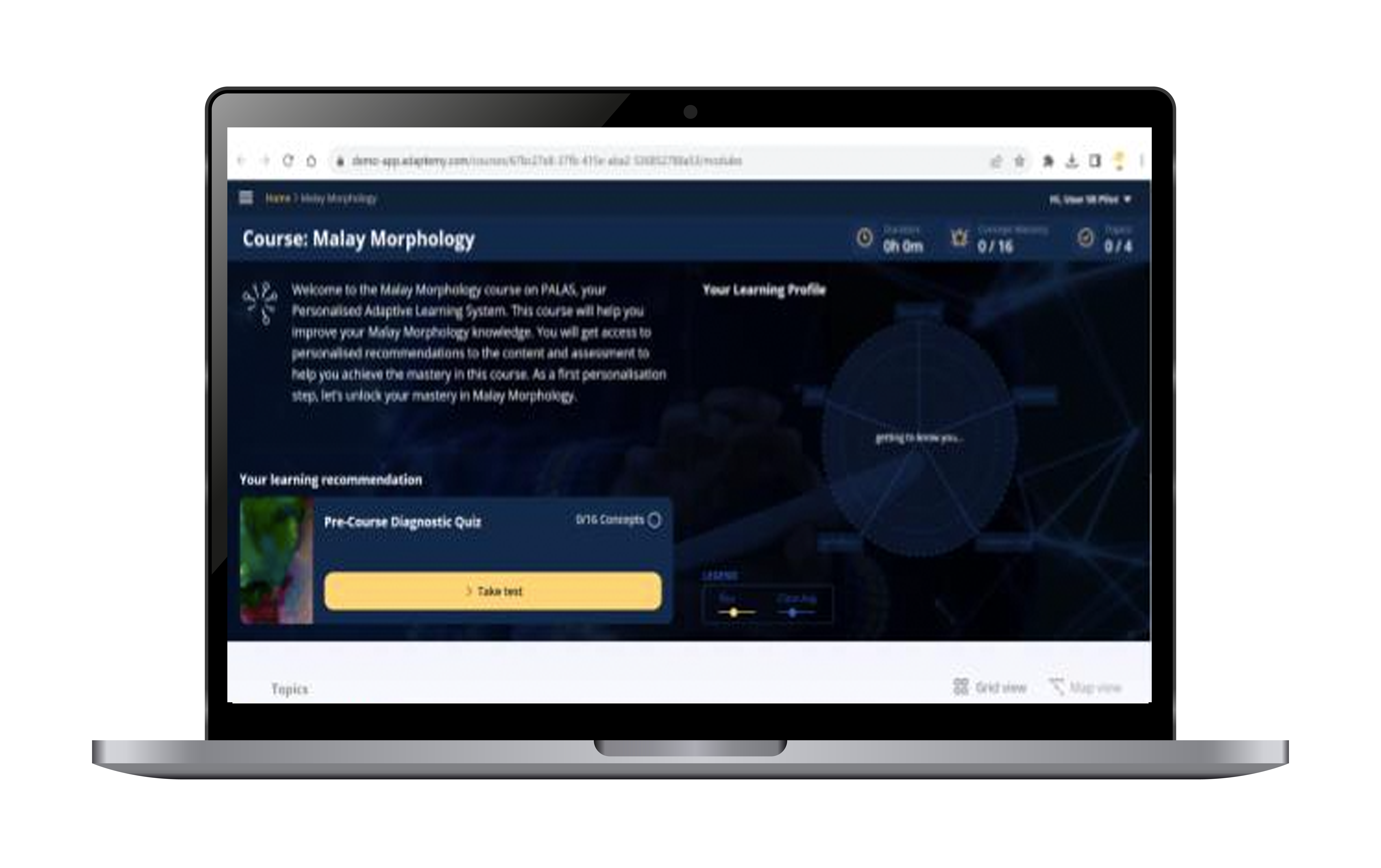 In the Malay Morphology module, student teachers often start with varying levels of prior knowledge. To address this challenge, the Personalised Adaptive Learning and Assessment System (PALAS) was developed as an AI-enabled platform designed to personalise learning and assessment. Leveraging adaptive learning principles, PALAS dynamically adjusts instruction and practice based on each learner’s progress, enabling a more tailored and self-directed learning experience.