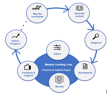 - Adaptive Mastery Loop: Uses real-time diagnostics to estimate mastery levels and recommend next steps for learning.