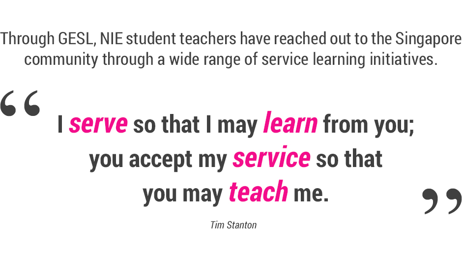 Group Endeavours in Service Learning Media Highlights About GESL Our Partners GESL Projects Events Additional Resources Bringing Out Good Character - SingTeach_Issue36 Building Characters from the inside out - NIE-ReEd5 YCM Guide Book