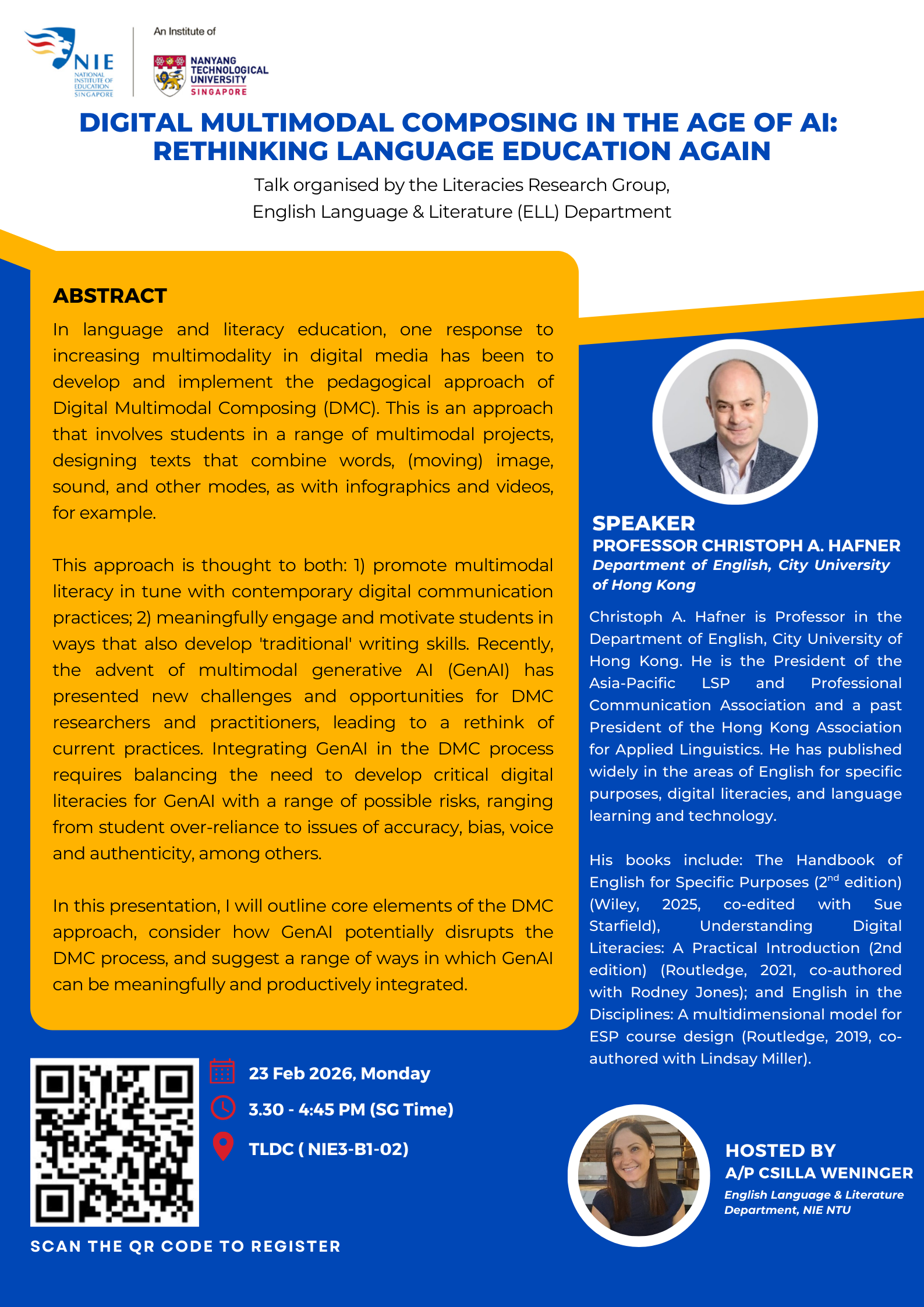 23 Feb 26: Talk on 'Digital multimodal composing in the age of AI: Rethinking language education again.'