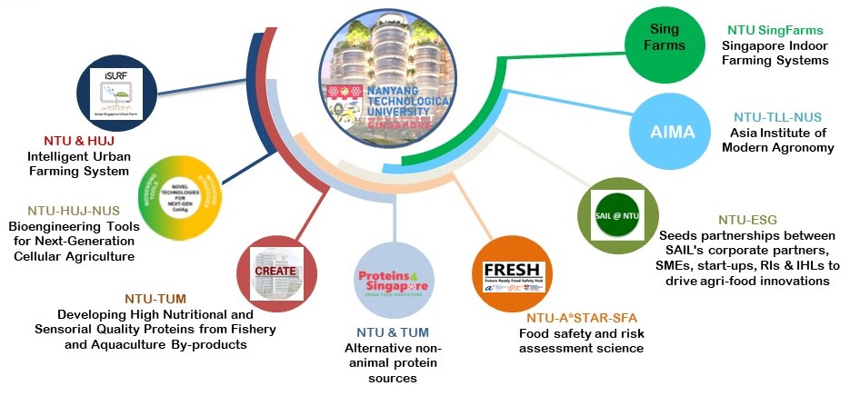 To enhance its research capabilities, NTU has formed strategic partnerships with local and international institutions such as the Technological University of Munich, Wageningen University, Hebrew University, A*STAR, and the Singapore Food Agency. These collaborations have enabled NTU to secure funding for key initiatives, including hosting the Future Ready Food Safety Hub (FRESH) and the SG Agri Innovation Lab (SAIL) under the Singapore Food Story initiative. Additionally, NTU collaborates with the National Healthcare Group to promote community health through precision nutrition.