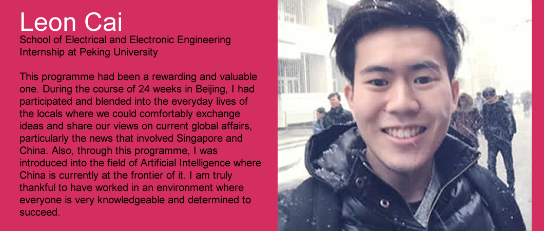 Huang KaiThe exchanged trip certainly contributed greatly in terms of my work capabilities as of now. Being an intern working for a huge reputable company like Microsoft, showed me that my skills and knowledge were lacking a lot and that huge improvements could be made. This motivated me to work on my skills and now I am able to contribute well to the companies that I have worked in. Certainly having the opportunity to intern under Microsoft also added a highlight to my resume, allowing me to standout and having a better chance to showcase my skills and capabilities in job interviews upon graduating.
