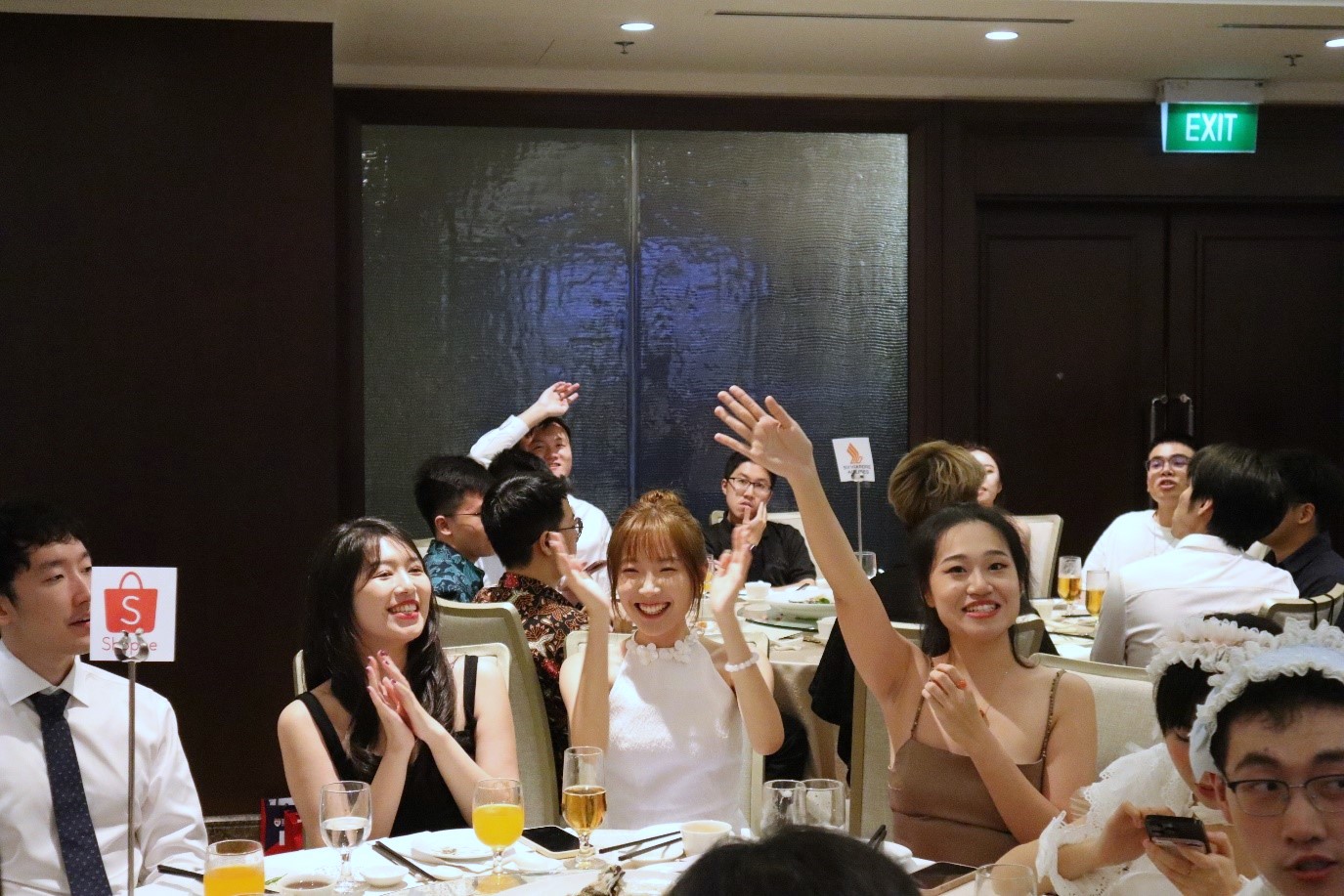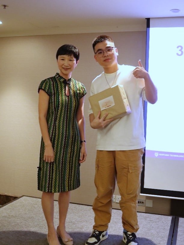 From Left – Right: Chen Bohan can't wait to dive into some fun with his brand-new Nintendo Switch, 3rd prize winner of the night. Yang Wenya celebrates with her new Marshall home speaker, the 2nd prize winner of the lucky draw. Mo Yaxi is all smiles holding his brand-new iPad, the grand prize winner of our end-of-course dinner lucky draw!