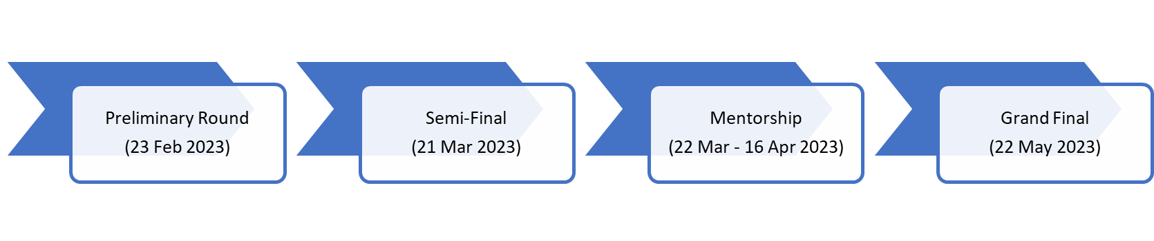 - Finalists will be judged based on a 20-min presentation and demonstration of prototype, and 5 mins of Q&A on 22 May 2023.