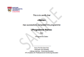 An NTU Certificate of Completion will be awarded to participants who achieve at least 75% course attendance.