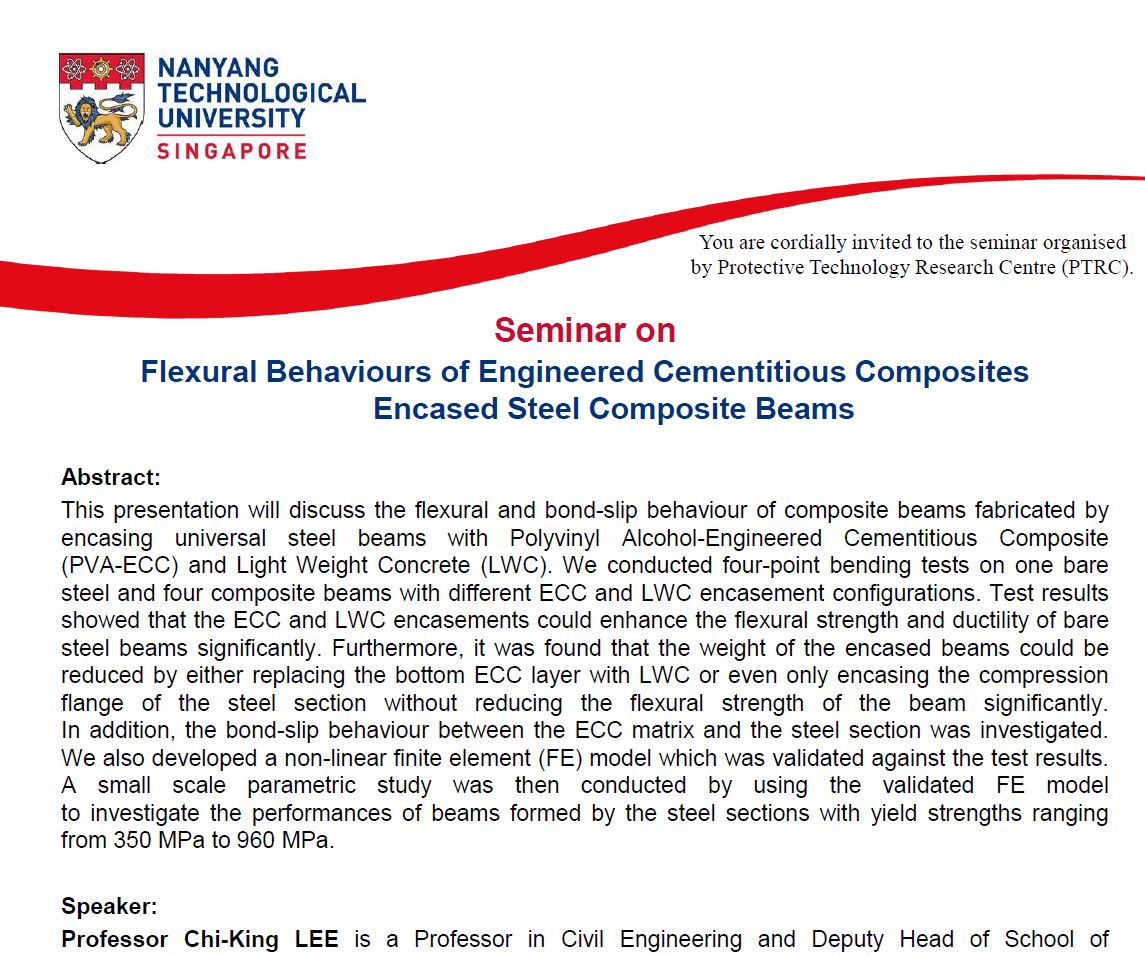Flexural Behaviours of Engineered Cementitious Composites Encased Steel Composite Beams, Prof Lee Chi King, 11 Jan 2019