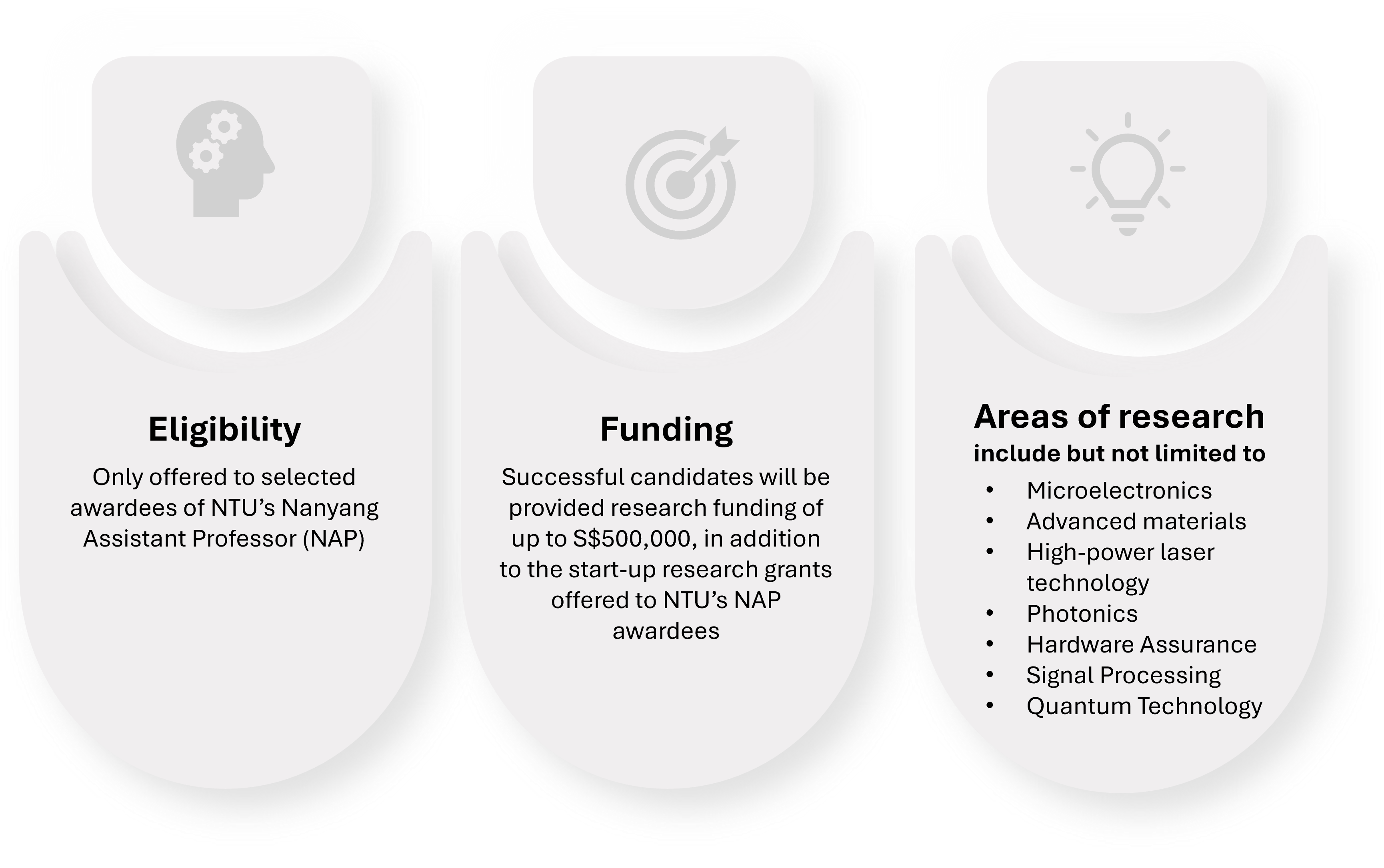 Successful candidates will be provided research funding of up to S$500,000, in addition to the start-up research grants offered to NTU’s NAP awardees.