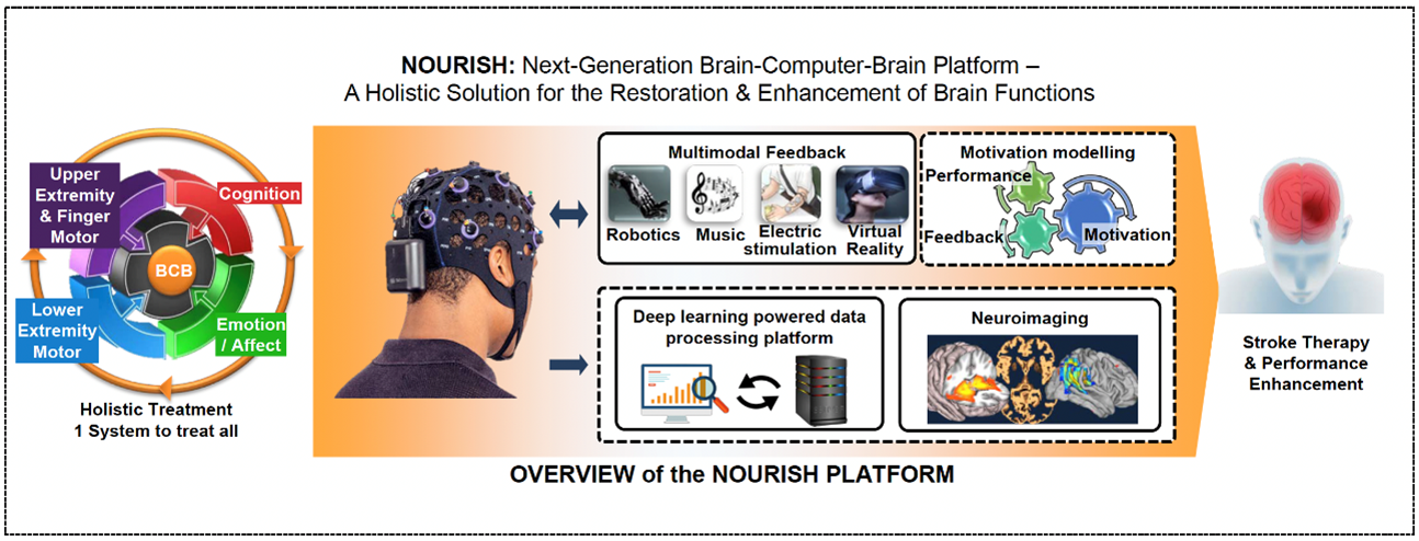 Artificial Intelligence and data science are at the core of Brain-computer interface technologies. In this project, we are developing deep learning algorithms to accurately decode motor, cognition, and emotion from the brain signals via various learning strategies. We will develop new digital health solutions for mental health and brain sciences based on these deep learning models as a holistic medtech solution for restoring and enhancing motor, cognitive, and emotional functions in one unified system. By collaborating with hospitals, we will also investigate the neural mechanism and biomarkers of brain function recovery.