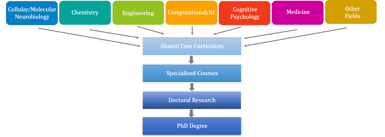 - Coursework - Given that students enter with diverse academic backgrounds, the initial goal of the Neuroscience Ph.D. Programme is to expose students to a wide spectrum of neurosciencerelated fields. Thus, during their first year in the Programme, students will take modules from a shared core curriculum prior to taking more advanced elective coursework in their area of research specialization: