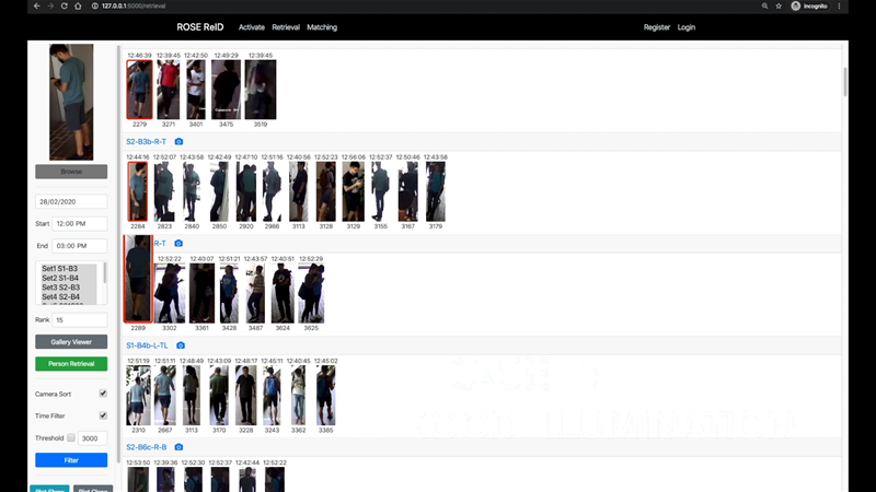 The person searching and retrieval functions are also well integrated into the system for better contract tracing purposes. The contact tracking can be achieved by two main functions: trajectory tracking retrieval and real-time person matching. The trajectory tracking retrieval aims to find the person of interest (POI) in all cameras and plot the historical movement trajectory of the POI within a building or campus, as shown in Figure 4. The real-time person matching aims to match the POI in real-time surveillance cameras and raise the warning to the surveillance officers, shown in Figure 5.