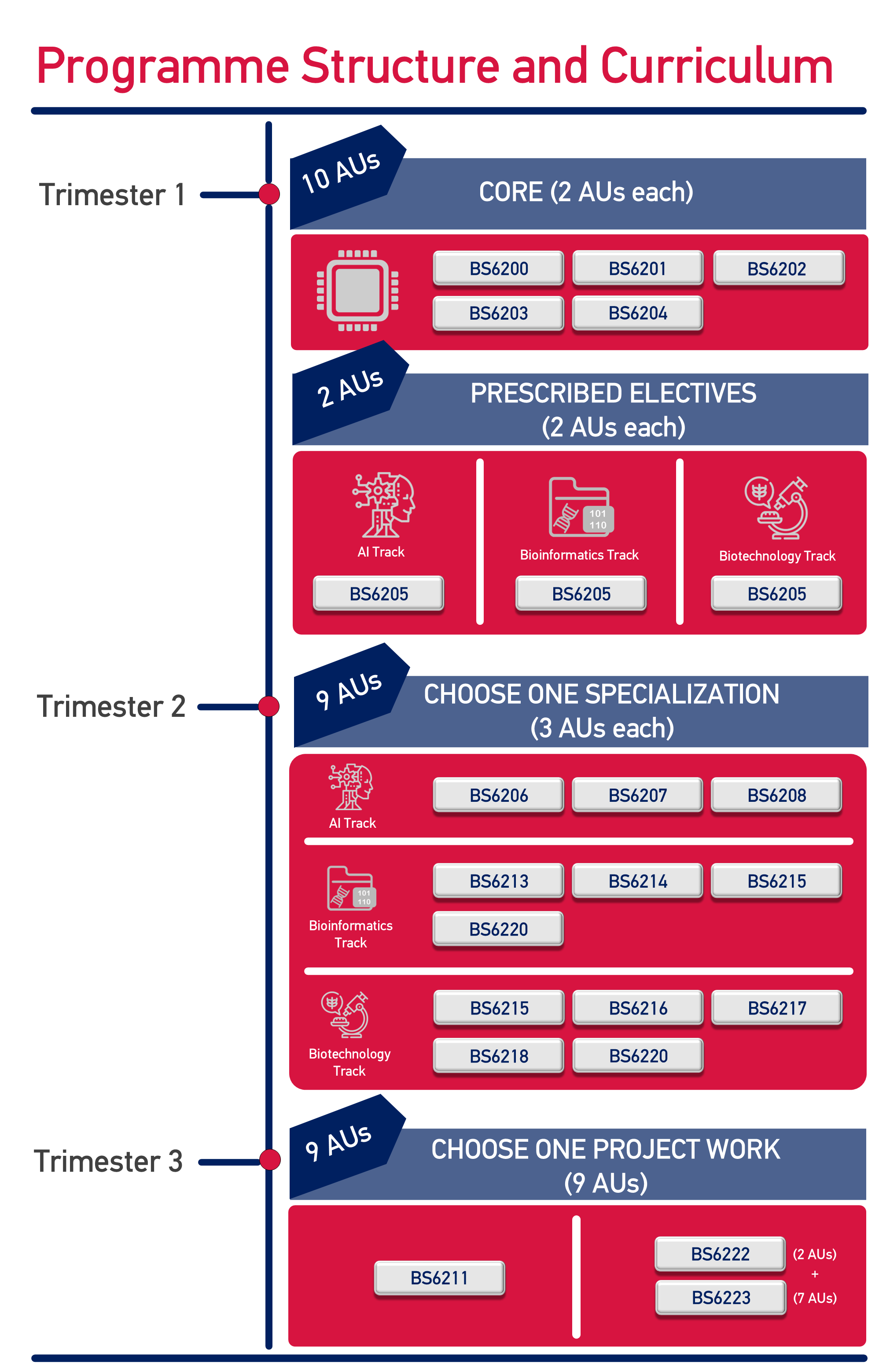 | BS6205 | Essential Bio-statistics and Bio-mathematics (For AI & Bioinformatics tracks) | 2 |