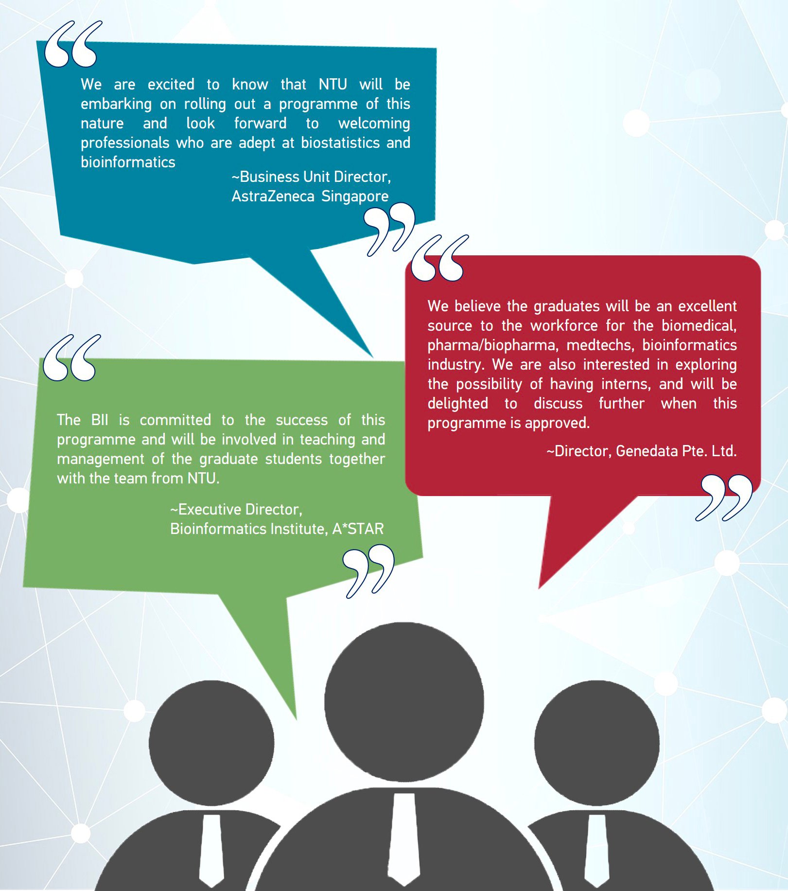 The Master of Science in Biomedical Data Science is the first graduate programme in the Asia-Pacific region offering data science training for specific application in the biomedical domain. The programme is a joint collaboration between Nanyang Technological University (NTU) and the Agency for Science Technology and Research (A*STAR) Singapore.