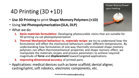 The Singapore Centre for 3D Printing (SC3DP) drives research development and industry adoption of additive manufacturing technology through collaborative projects with leading industry partners, and with schools and research centres within and beyond Nanyang Technological University, Singapore (NTU, Singapore).