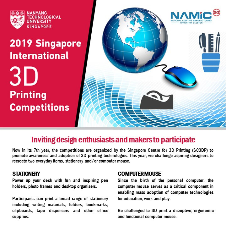 Now in its 7th year, the 2019 competitions were organised by the Singapore Centre for 3D Printing (SC3DP) to promote awareness and adoption of 3D printing technologies.