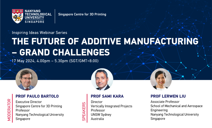challenges of AM as a sunrise industry and its potential for growth. There will be two talks followed by a panel discussion. The panel discussion will be moderated by Prof Paulo Bartolo, SC3DP Executive Director.