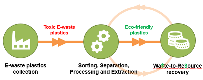 Large amounts of waste electrical and electronic equipment (WEEE) are generated in the world which is causing threats to the environment and human health. Many of the WEEE materials are highly toxic. However, WEEE also contains valuable materials which deserve to be recycled and reused. WEEE plastics can contain various toxic and harmful substances, for example, flame retardants, which can be in the formation of poly-brominated dibenzo-p-dioxins and benzofurans, possibly causing the pollution of water and threatening human health. Thus, the treatment leading to the recycling of harmful WEEE plastics is essential for WEEE management globally and in Singapore’s context. Indeed, Singapore is a land-scarce country where many WEEEs are used and many WEEEs’ plastic wastes are produced. Singapore produces 60,000 tonnes of e-waste annually, of which only 6% is recycled. Hence, it is important to develop efficient technologies for the detoxification and recycling of WEEE-waste plastic to protect Singapore public from the potentially unsafe WEEEs’ plastics.