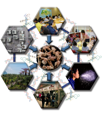 SCELSE’s Air Microbiome integrated programme focuses on Singapore’s urbanised tropical environment. Modern tropical locations are unique because they offer a range of natural and artificial climatic conditions, to which the microbes respond. Central ventilation and cooling systems may quickly bring relief to the hot ambient temperatures and high humidity, but this action may result in changes to the air microbial composition, function and activity. Increasing numbers of people are spending more and more time indoors, immersed in surrounding microbial conditions that have yet to be discerned. Exercising control over the conditions of circulating air such as pressure and humidity may provide a means to reduce or eliminate potential health risks.
