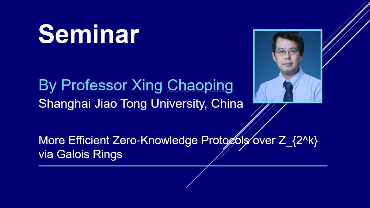 Bio: Xing Chaoping is currently a chair professor at Shanghai Jiao Tong University. Prior to this position, he has worked at various institutions including Nanyang Technological University, National University of Singapore, Austrian Academy of Sciences and University of Science and Technology of China. His research interests include coding, cryptography and number theory.