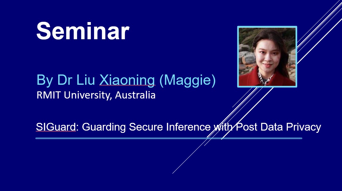 Bio: Dr Xiaoning (Maggie) Liu is a Lecturer (aka Assistant Professor) at the School of Computing Technologies, RMIT University, Australia. Her research pivots on data privacy and security related to machine learning, cloud computing, and digital health. Her current focus is on designing practical secure multiparty computation protocols and systems to its applications in privacy-preserving machine learning. In the past few years, her work has appeared in prestigious venues in computer security, such as USENIX Security Symposium, NDSS, and European Symposium on Research in Computer Security (ESORICS), IEEE Transactions on Dependable and Secure Computing (TDSC), IEEE Transactions on Information Forensics and Security (TIFS). Her research has been supported by Australian Research Council, and CSIRO. She is the recipient of the Best Paper Award of ESORICS 2021.