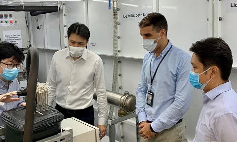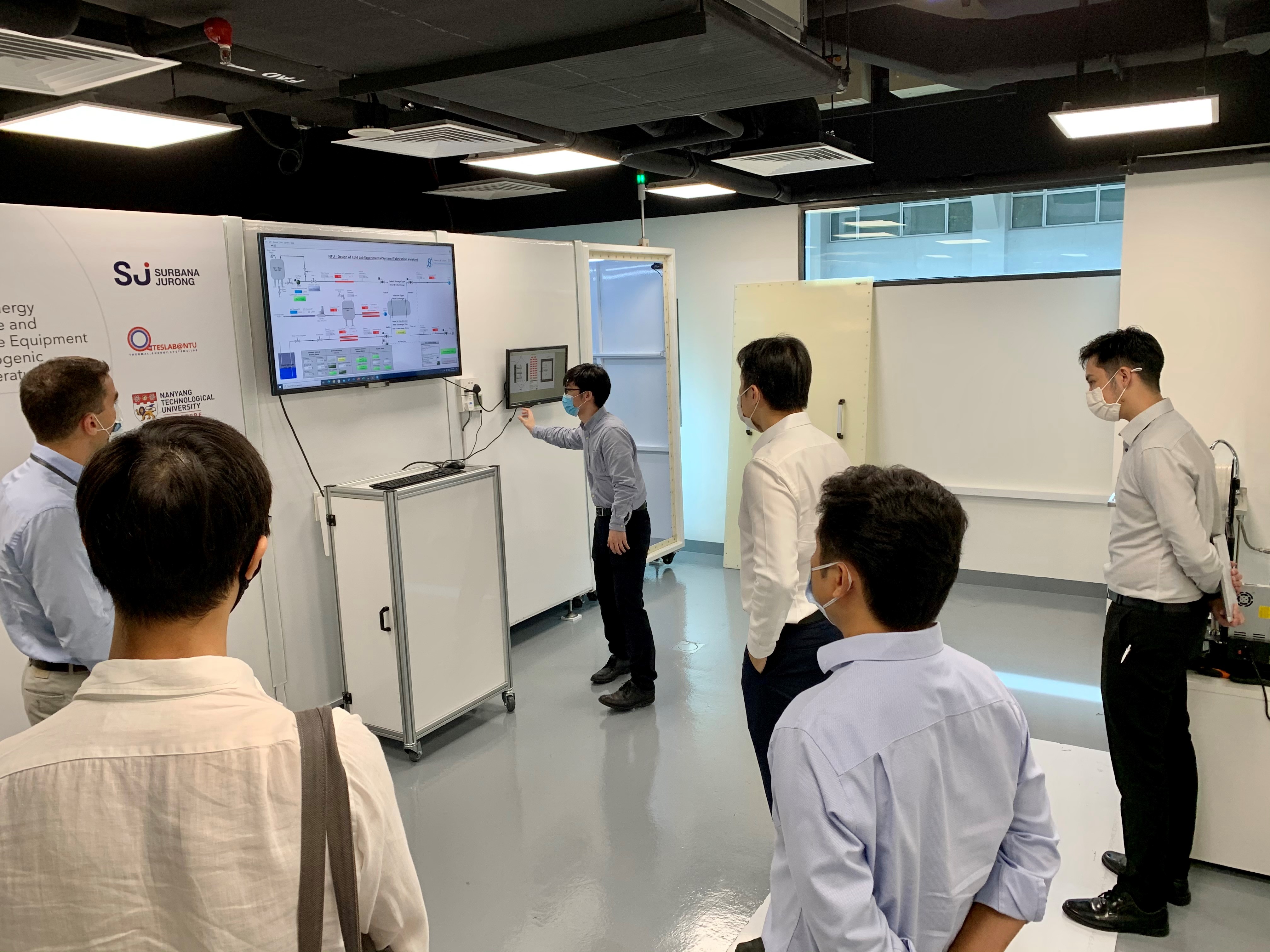 Prof Alessandro Romagnoli and Mr Yann Grynberg had given a lab tour of SJ-NTU corporate Lab where the Cold Lab and its Cold Energy Capture and Storage Equipment @ Cryogenic Temperature was demonstrated. In collaboration with Surbana Jurong Private Limited, it is Asia’s first ‘Cold Lab’ that develops ‘Cold Energy Capture’ and ‘Cold Energy Storage’ technologies. These technologies harness cold temperatures produced during regasification, a process where LNG is converted back to natural gas at atmospheric temperature. The harnessed cold energy could power various industrial applications such as cooling systems in warehouses and data centres.