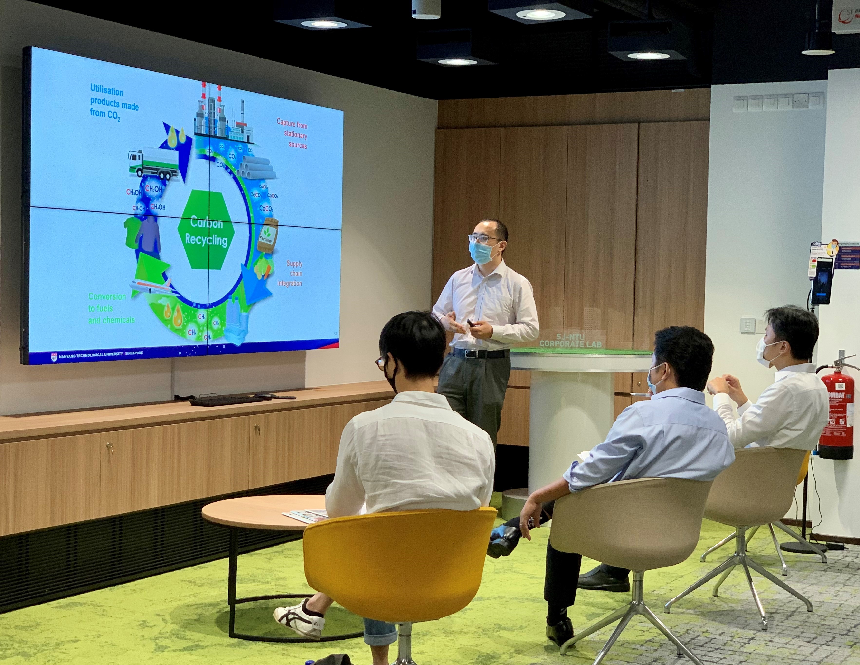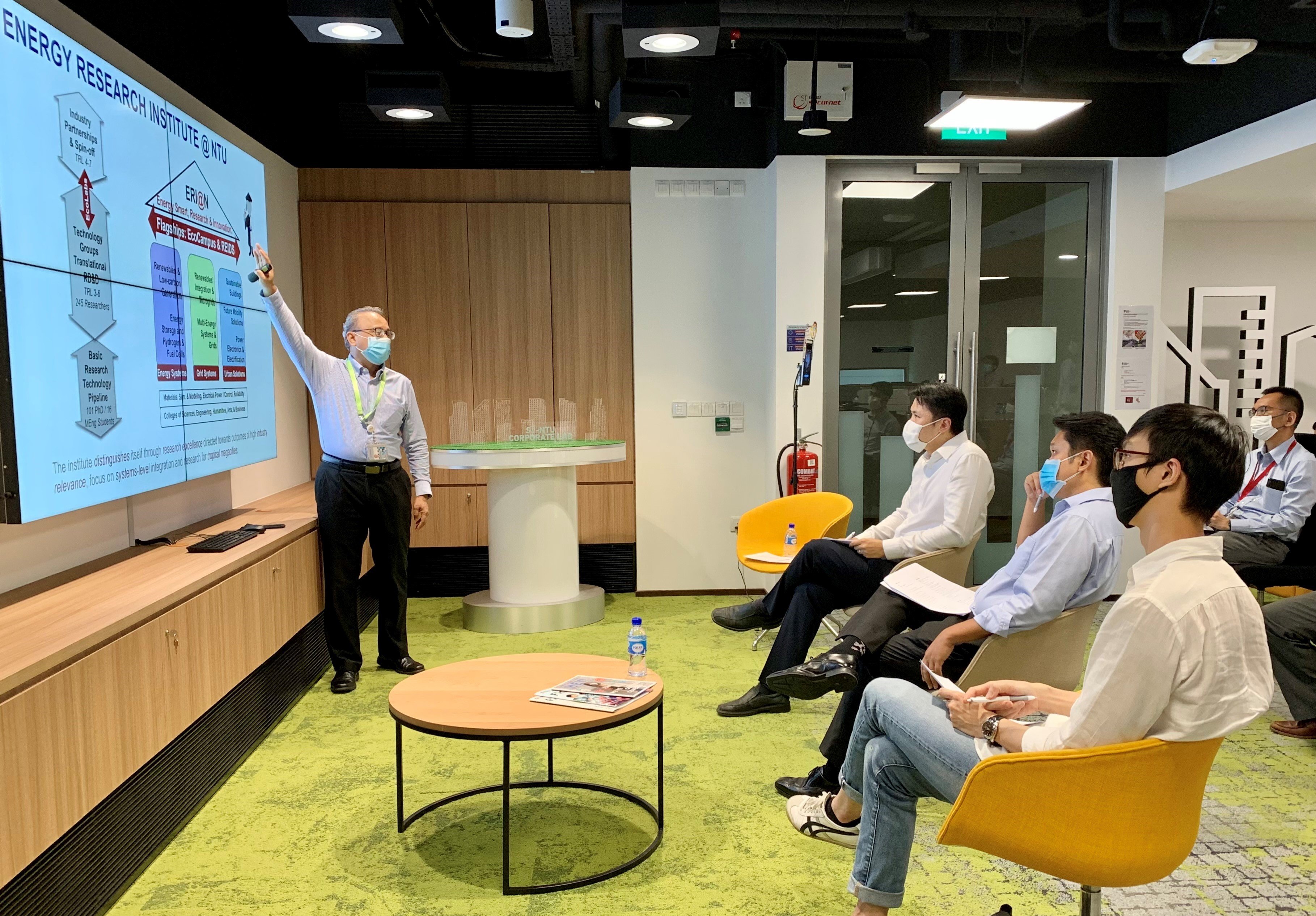A delegation led by Mr Shawn Huang Wei Zhong, Member of Parliament (MP) for Jurong GRC for Jurong Spring and Director, Temasek International had visited Nanyang Technological University Singapore (NTU), including SJ-NTU Corporate Lab on 9 November 2020. They were welcomed by Professor Subodh Mhaisalkar, Associate Vice President (Strategy & Partnerships), NTU and Executive Director, Energy Research Institute @ NTU (ERI@N); Associate Professor Alessandro Romagnoli, Co-Director, SJ-NTU Corporate Lab; Professor Chan Siew Hwa, Co-Director, ERI@N and Mr Yann Grynberg, Deputy Director, SJ-NTU Corporate Lab. Other NTU attendees were Assistant Professor Paul Liu Wen from School of Chemical and Biomedical Engineering and Dr Ngin Hoon Tong, Mr Niels de Boer, Dr Anshuman Tripathi, Dr Ding Ovi Lian and Dr Mark Lim from ERI@N.