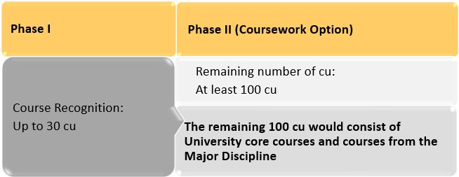 The SUSS - SAF Programme allows for credit recognition of 30 cu from the CE Master's courses completed to NTU's accreditation requirements in Phase 1. To successfully obtain the Bachelor's degree (minor in Military Studies), students are required to complete the remaining number of required cu from the Major Discipline and University core courses.