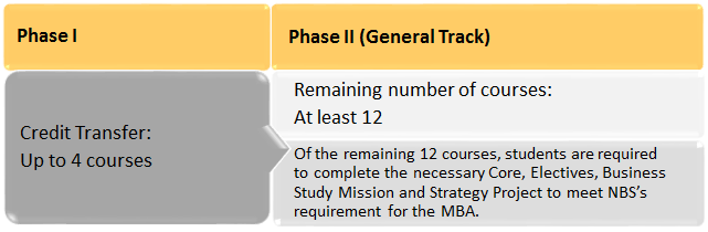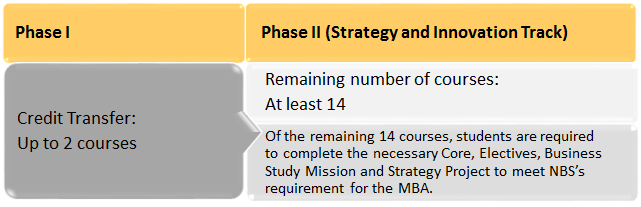 Participants are required to complete 9 core courses, 4 electives, 1 Leadership Development module spread across two trimesters, 1 overseas Business Study Mission and 1 Strategy Project. Students have the option to do a MBA (General) or MBA (Strategy and Innovation).