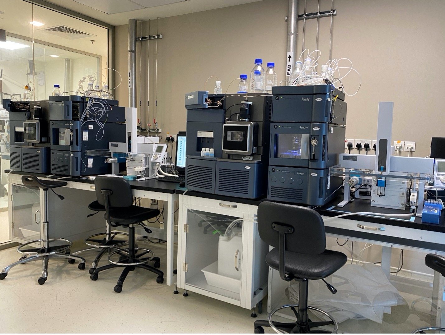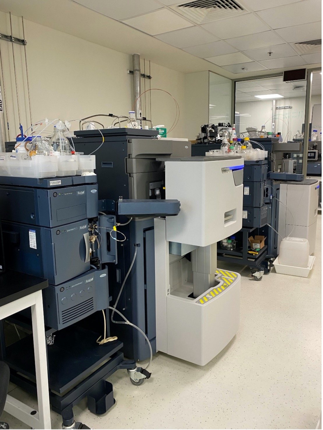 The LC-MS facilities at SPC include high-resolution quadrupole/time-of-flight (QToF) mass spectrometers for untargeted profiling and biomarker discovery and tandem quadrupoles (TQ) for quantitative targeted analysis of biomolecules. There are also nanoLC with ion mobility ToF MS systems for challenging proteomics measurements consisting of complex mixtures of proteins covering several orders of magnitude dynamic range and where sample quantity is limited. Ion mobility separation allows biomolecules to be separated not only by their hydrophobic/hydrophilic properties (RT) and mass (m/z) but also by their size and shape (collisional cross section).