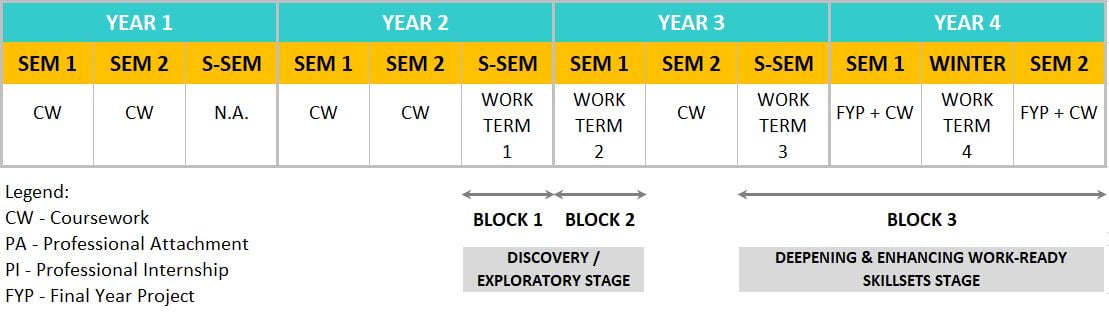 The WSDeg consists of 4 Work Terms and a WSDeg FYP.