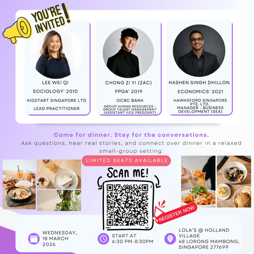 At the SSS Alumni Office, we cherish our bond with each of our graduates and are committed to enriching this lifelong relationship. Our goal is to foster an active, dynamic connection between our alumni and the broader NTU family. Stay engaged with us and your fellow alumni - because your journey with SSS doesn’t end at graduation;