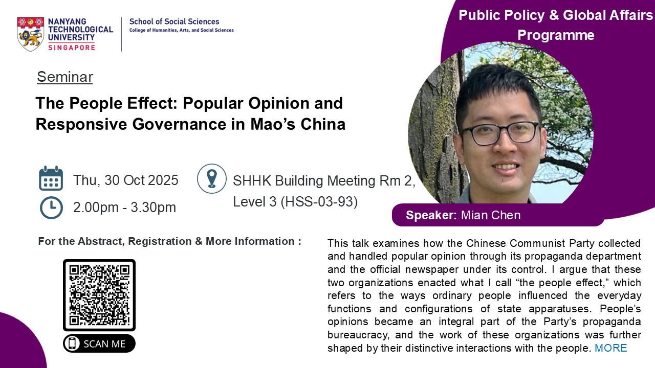 (PPGA Seminar) The People Effect: Popular Opinion and Responsive Governance in Mao’s China
