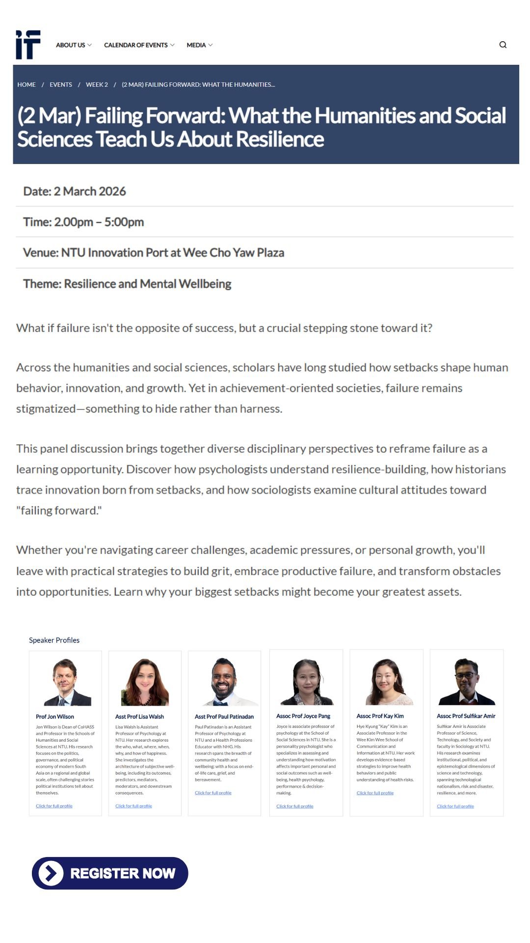 Date: Monday, 2 March 2026Time: 2:00 pm – 5:00 pmVenue: NTU Innovation Port at Wee Cho Yaw PlazaTheme: Resilience and Mental Wellbeing